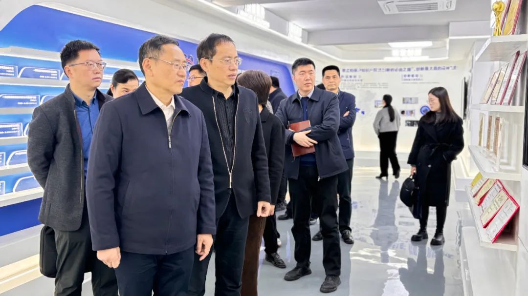 太昌電子董事長陳俠虎迎接引導副省長曹志強一行抵達太昌電子展廳。副省長曹志強一行調研太昌電子研發生產、北斗規模應用、行業推廣應用等情況,特別考察了太昌電子“北斗定位+GIS”核心技術平臺,聽取公司基于北斗定位、GIS地理信息系統、鐵路電子地圖、物聯網的安全控制技術等領域產品研發及應用情況匯報。